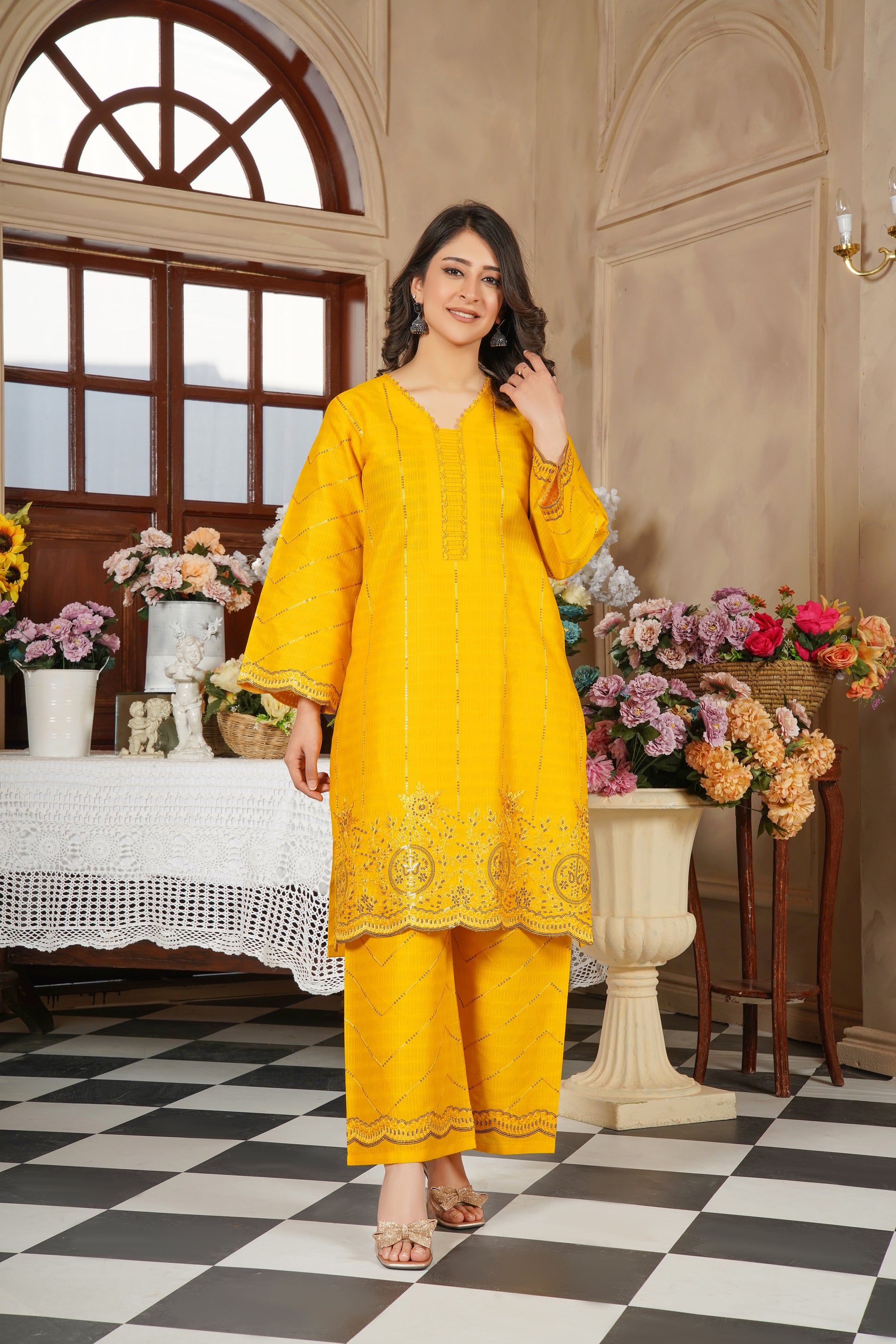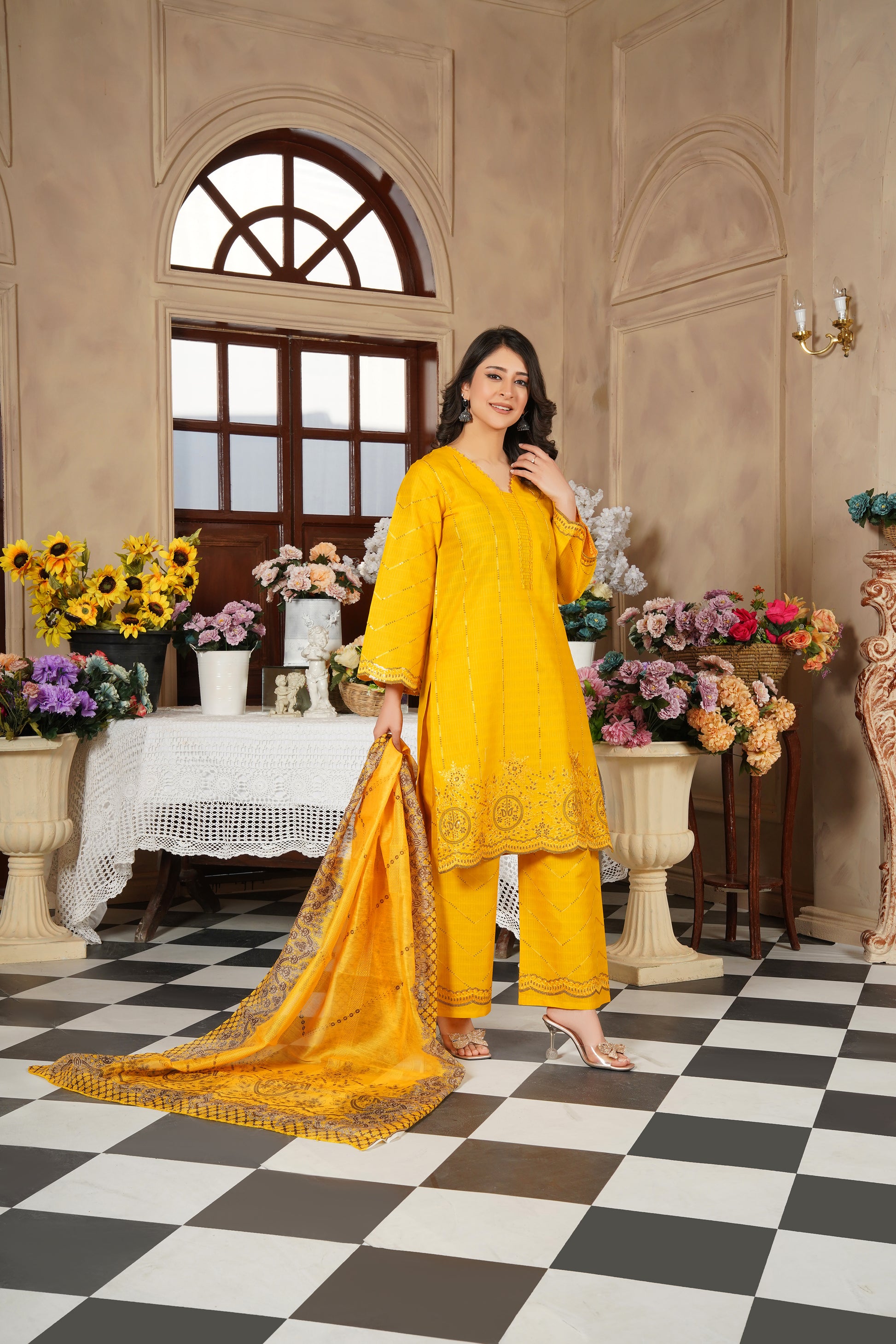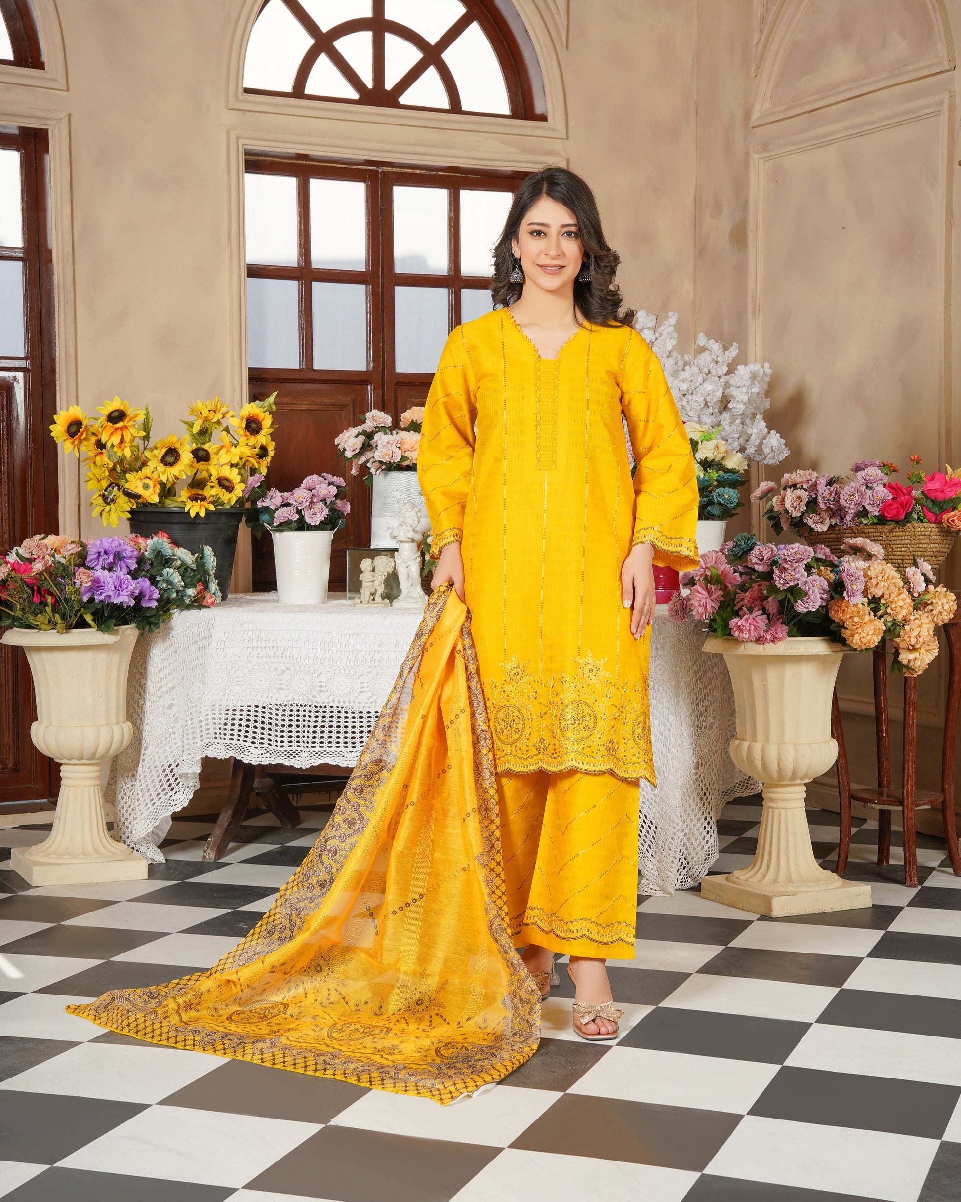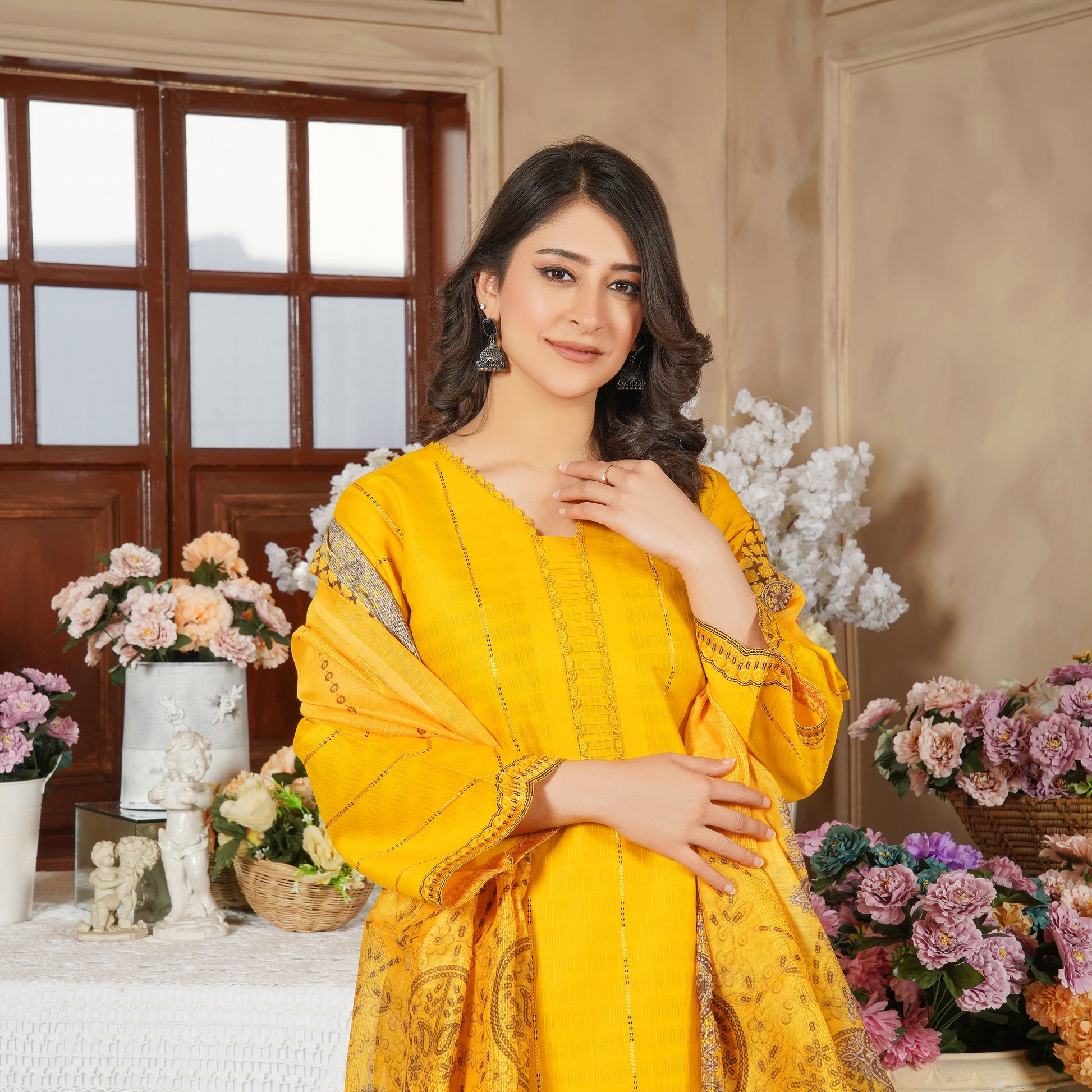 Brighten up your festive and casual look with this vibrant mustard yellow 3-piece stitched suit from Fatima Official. Crafted on premium fabric with detailed embroidery, this outfit exudes charm and tradition with a graceful printed dupatta.